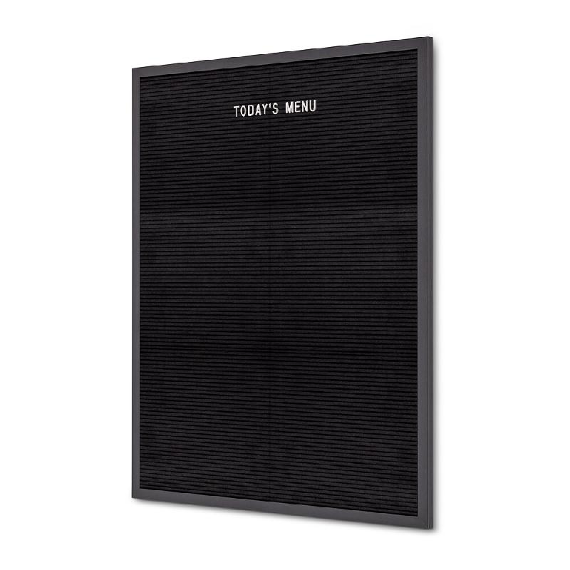 Élégant et vintage : notre tableau à lettres noir avec cadre noir. Affichez votre menu, un message de bienvenue ou une citation. Les lettres sont faciles à positionner et à ajuster pour modifier le contenu rapidement et simplement. Comprend 500 lettres. Les cadres sont disponibles en trois tail
