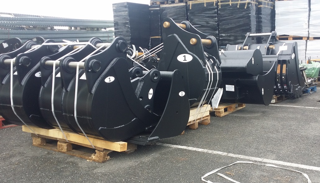 Set pour Liebherr R924 - 25 tonnes - Déstockage - Coupleur hydraulique, godet rétro et godet dérocteur