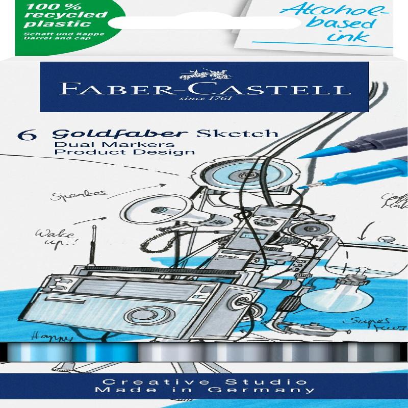 Faber-Castell 164806 - Goldfaber Sketch Marker Design de produit, étui de 6 marqueurs à alcool avec pointe Brush et pointe Fineliner - 164806