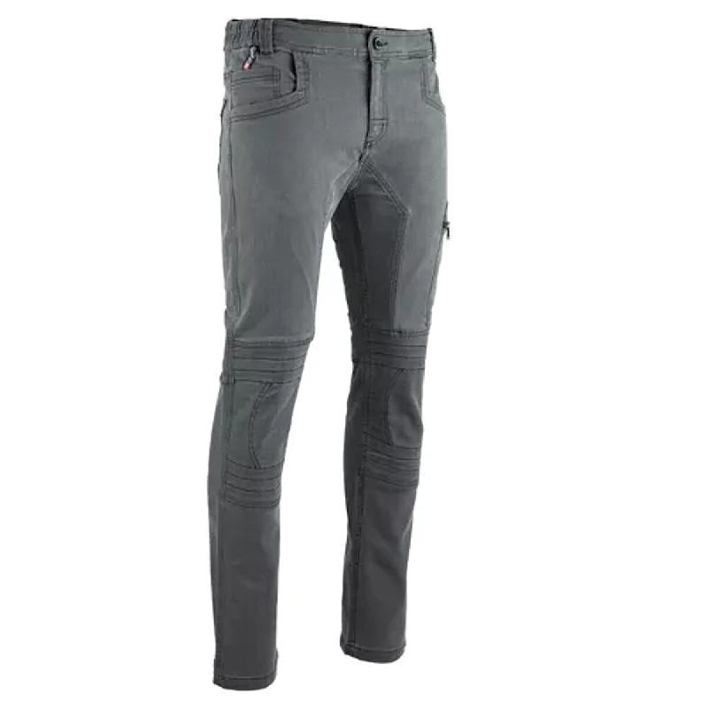 des jambes préformées. Denim gris 75 % coton 23% polyester 2% élasthanne 325 gr/m² (9 OZ).