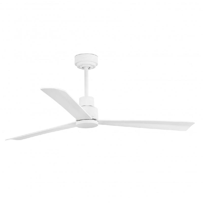 Ventilateur de plafond blanc sans lumière avec moteur à courant continu. Fabriqué en acier avec 3 pales en bois MDF, il est actionné par la télécommande, incluse.