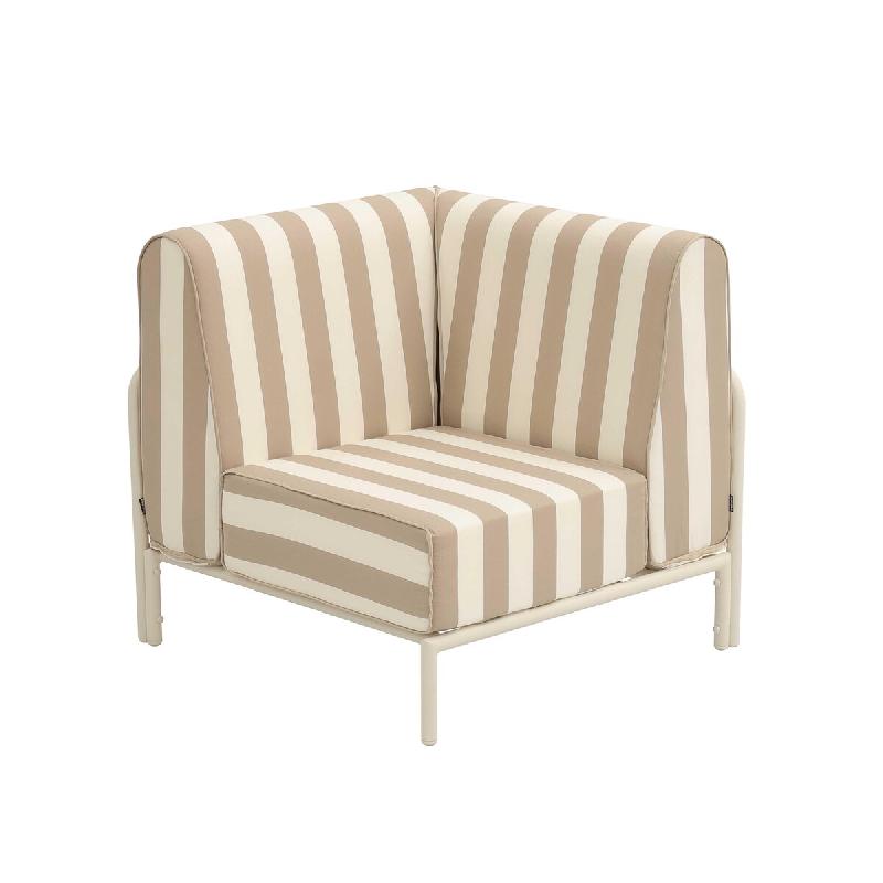 Fauteuil d'angle rayé pour salon de jardin modulable tissu beige - beige aluminium 114806