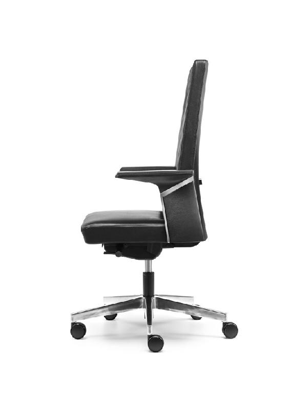 Fauteuil de direction Vela. Revêtement cuir ou éco - cuir. Haut dossier. Design épuré avec structure aluminium poli. Mécanisme synchrone. Garantie 3 ans. - Marque : Della Rovere