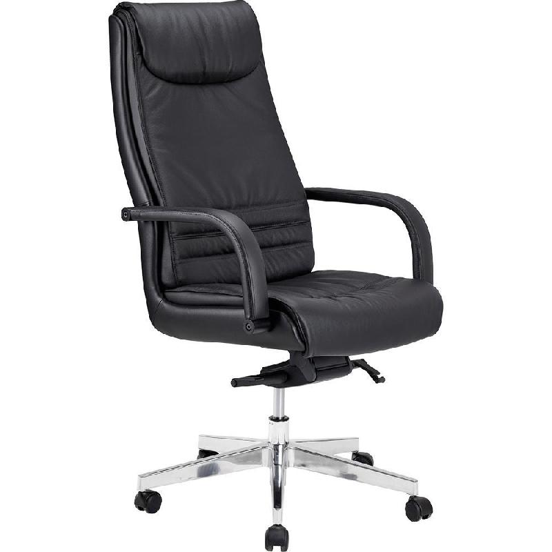 Vous apprécierez l'élégance du fauteuil de direction RIXON qui agrémentera votre lieu de travail. - Son haut dossier de 74 cm tapissé de cuir et sa base en acier chromé vous séduiront par sa grande prestance. - La robustesse de sa structure et son mécanisme synchrone feront de ce f