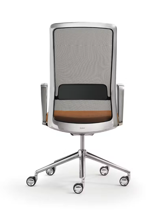 Piétement : aluminium poli, 5 branches avec roulettes en aluminium poli