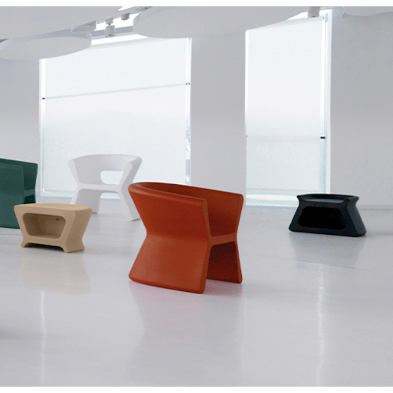 Le fauteuil lounge Pal, conçu par Karim Rashid pour Vondom, se distingue par son design organique et fluide, véritable signature du designer. Ses formes enveloppantes créent une assise à la fois confortable visuellement et fortement identitaire, idéale pour structurer des espaces contemporains.