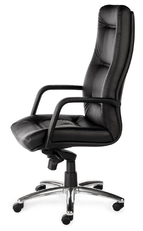 Son haut dossier de 73 cm tapissé de cuir et sa base en acier chromé vous séduiront par sa prestance. - La robustesse de sa structure et son mécanisme synchrone feront de ce fauteuil votre allié pour de longues années. - L'ergonomie de ce fauteuil est complétée par un jeu d'accoudoir