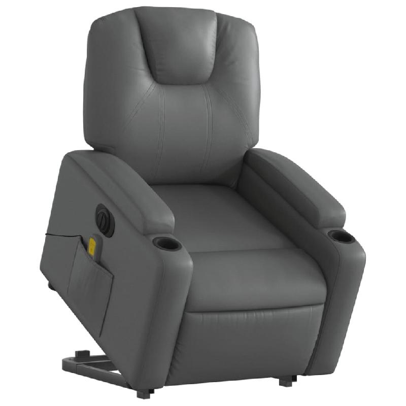 Fauteuil inclinable de massage électrique gris similicuir Modèle Elvaris - 8721012169425