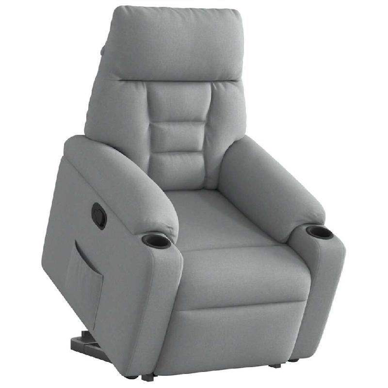 Asseyez-vous et détendez-vous dans ce fauteuil inclinable très confortable ! Fonction de levage électrique : ce fauteuil inclinable pour personnes âgées est équipé d'un moteur électrique pour la fonction de levage. Grâce à la fonction qui pousse toute la chaise vers le haut, vous pouvez facilement vous tenir debout sans stresser votre dos et vos genoux en appuyant simplement sur le bouton.Fonction d'inclinaison manuelle : ce fauteuil inclinable est doté d'une poignée du côté droit. Vous pouvez régler manuellement le repose-pieds et le dossier dans n'importe quelle position selon votre confort en tirant simplement sur la poignée. Cette fonction permet une inclinaison maximale de 135 degrés. De plus, le dossier peut revenir rapidement à sa position d'origine en tirant simplement sur la poignée.Expérience d'assise confortable : le siège, le dossier et les larges accoudoirs bien rembourrés recouverts de tissu procurent une sensation confortable et chaleureuse, vous permettant de vous sentir enveloppé lorsque vous êtes assis. Le tissu présente un aspect simple et épuré et est respirant et durable.Cadre solide et stable : le cadre en bois et en métal offre une structure solide et une grande stabilité. Ce fauteuil inclinable est confortable et durable.