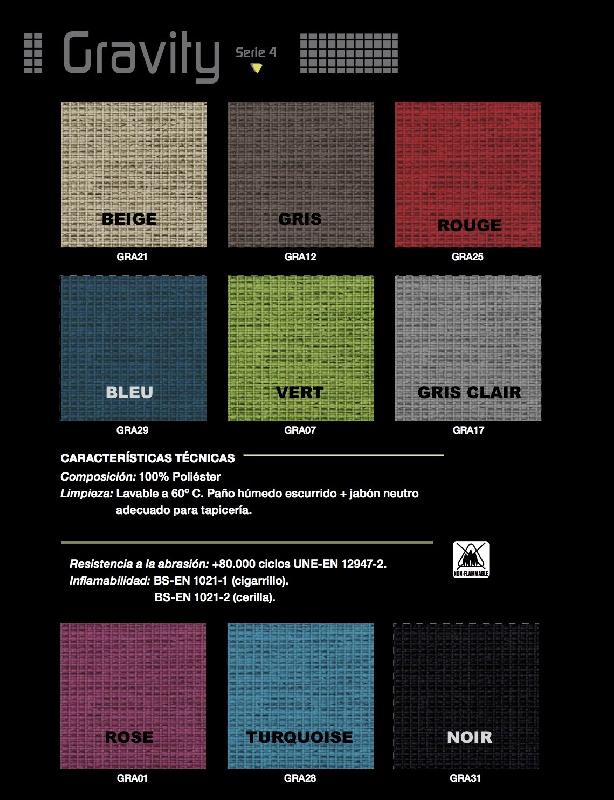 - Dossier et assise : mousse de polyuréthane injectée : densité 60K/m3