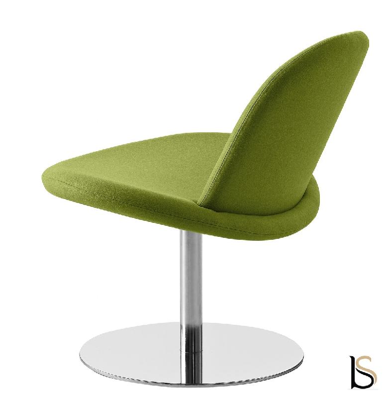 L'ensemble de ce fauteuil repose sur un élégant piètement en acier chromé finition inoxydable.