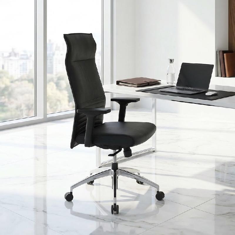 Fauteuil Président BRICE cuir synchrone - cuir noir -