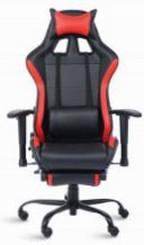 Fauteuil "Racing Chair" en simili - cuir avec repose - jambes - • Repose - jambes : télescopique - • Dossier : forte inclination - • Réglage : de la tension de bascule - • Accoudoirs : réglables en hauteur et en profondeur - • Soutien lombaire : réglable en hauteur - • Appui -