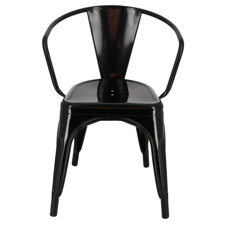 Ce fauteuil en métal verni est lélégant et fonctionnel pour tout espace de restauration. Son design intemporel avec des lignes fluides et un dossier arrondi intégrant des accoudoirs, allie confort et style, répondant aux attentes des établissements soucieux de leur image, tels que les cafés,