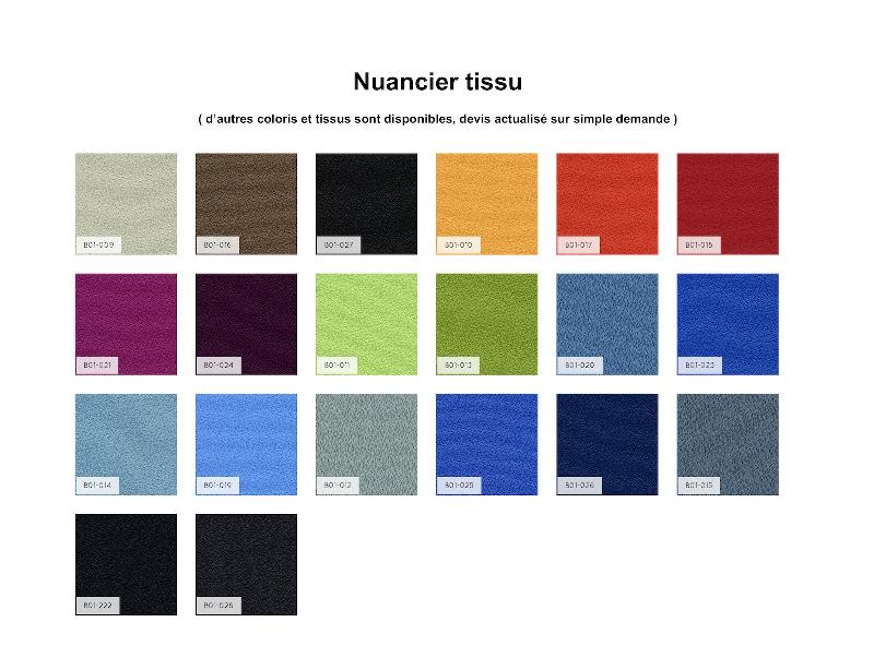 L'assise est recouverte d'un tissu très résistant à l'abrasion disponible dans de nombreux coloris, d'autres finitions viennent compléter cette collection comme le cuir véritable ou l'eco cuir, consultez-nous pour un devis personnalisé.