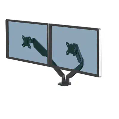 Bras porte - écran Platinum Series™ double vertical - Noir - Fixation à pince : Permet une installation facile et rapide. - Mécanisme à gaz : Offre un ajustement simple et précis. - Capacité : Chaque bras supporte un écran pesant jusqu'à 10 kg maximum et mesurant jusqu'à 27''. - Faci