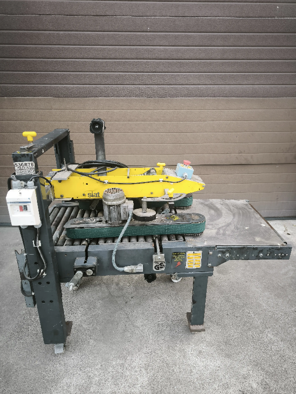 CODE ARTICLE : 1407005 - MARQUE : SIAT - MODELE : SM11 - NUMERO DE SERIE : 34011 - DESCRIPTION : - SCOTCHEUSE DE CAISSE - MARQUE SIAT - TYPE SM11 - N° SERIE 34011 - ROULEAU A PRESSION LATERALLES POUR TENIR LES RABATS SUPERIEURS VOISINS - HAUTEUR DE TRAVAIL REGLABLE - ALIMENTATION 380