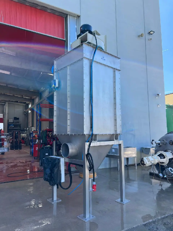 Filtre à manches fabriqué par VIMAX, modèle FNC2 9/3-1500, avec une surface filtrante de 9 m2. Il dispose de 9 manchons d'un diamètre de 215 mm et d'une longueur de 1500 mm (1 m2 de filtration)