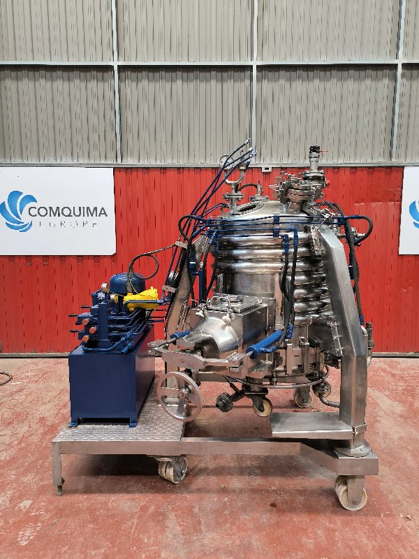 Filtre déshydrateur nucha en acier inoxydable de la marque E.BACHILLER de 0,4 m2. - Année : 1987. - Centrale hydraulique avec moteur de 7.5 cv 1410 rpm 50 hz 220 v - Sans documentation - MatérielAcier inoxydable - Caractéristiques techniquesAnnée de fabrication : 1987 - Pression de servic