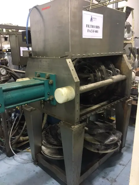 Filtre fabriqué par BHS en acier inoxydable, modèle AP300. Dimensions de transport (longueur x largeur x hauteur) : 2286 x 915 x 2440 mm
