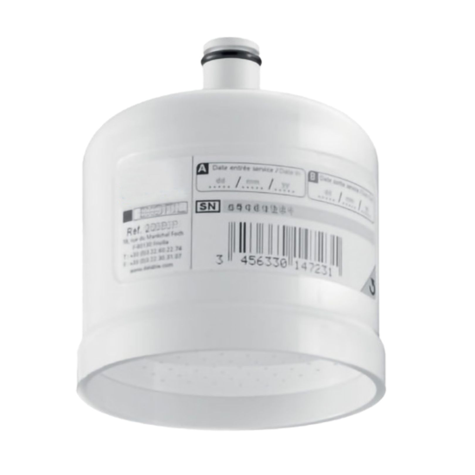 Pour minimiser le risque de contamination croisée ou rétrograde, le matériau du corps du filtre intègre un additif bactériostatique non relargué dans l'eau.Â