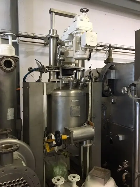 Filtre Nucha en acier inoxydable 316 par TOURNAIRE en 1999. Filtre d'une capacité de 120 litres et d'une surface de filtration de 0,23m2.