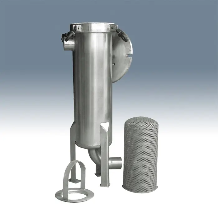 Filtre en acier inoxydable 316L avec un panier avec un trou perforé Ø3mm, prêt à être équipé d'un sac en tissu filtrant universel PT-32 de Ø180x770mm.