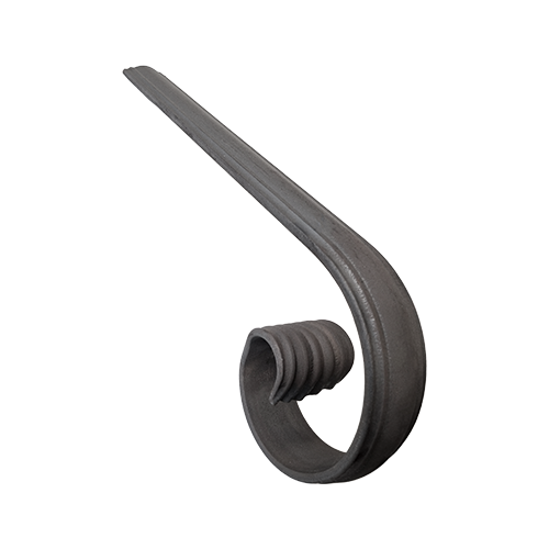 Crosse roulée pour départ ou fin de main courante de 50mm de large sur 14mm d'épaisseur et 100mm de hauteur au niveau de l'escargot. - Adaptée à la main courante moulurée FF00167, la crosse se soude directement sur la main courante afin de donner une touche esthétique et élégante à votre