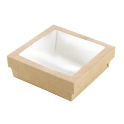 FIRSTPACK FHC - 250Pcs - Boite "Kray" carrée carton brun avec couvercle à fenêtre - 155x155x50mm, 900ml - marron en carton 210KRAYB155