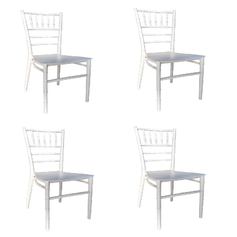 Chaise plastique blanche empilable de type Bistro pour l'intérieur et l'extérieur. Une housses de qualité adaptés pour cette chaise peut être acquise en option, lavage en machine et pas de repassage nécessaire.
