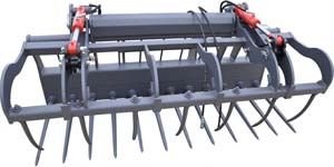 - GRL.S.2E.2P : Grappin en 2 parties dents plates soudées épaisseur 20mm avec 2 ébauches reliant les dents entre elles (permettant la passage de bielle pour chargeuses cinématique en Z).