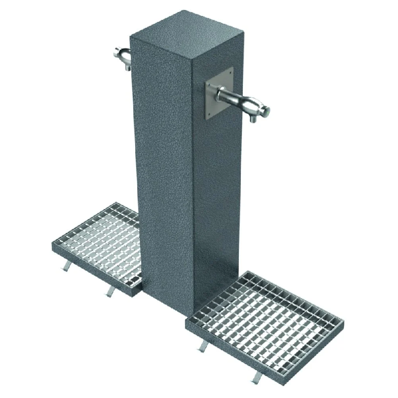 ⚠Pas de système antigel - purge des fontaines recommandée en hiver Description La fontaine Galdana double est conçue pour équiper efficacement les espaces publics très fréquentés. Sa structure en acier épais avec finition époxy gris martelé garantit une excellente résistance aux conditions extérieures et aux usages intensifs. Équipée de deux robinets temporisés à bouton poussoir en laiton chromé, elle permet une utilisation simultanée par plusieurs usagers tout en limitant la consommation d'eau. Livrée avec une grille d'écoulement en fonte ou en acier, cette fontaine assure une évacuation efficace de l'eau et s'intègre parfaitement dans les aménagements urbains des collectivités. Les avantages ✔ Structure robuste en acier épaisseur 4 mm