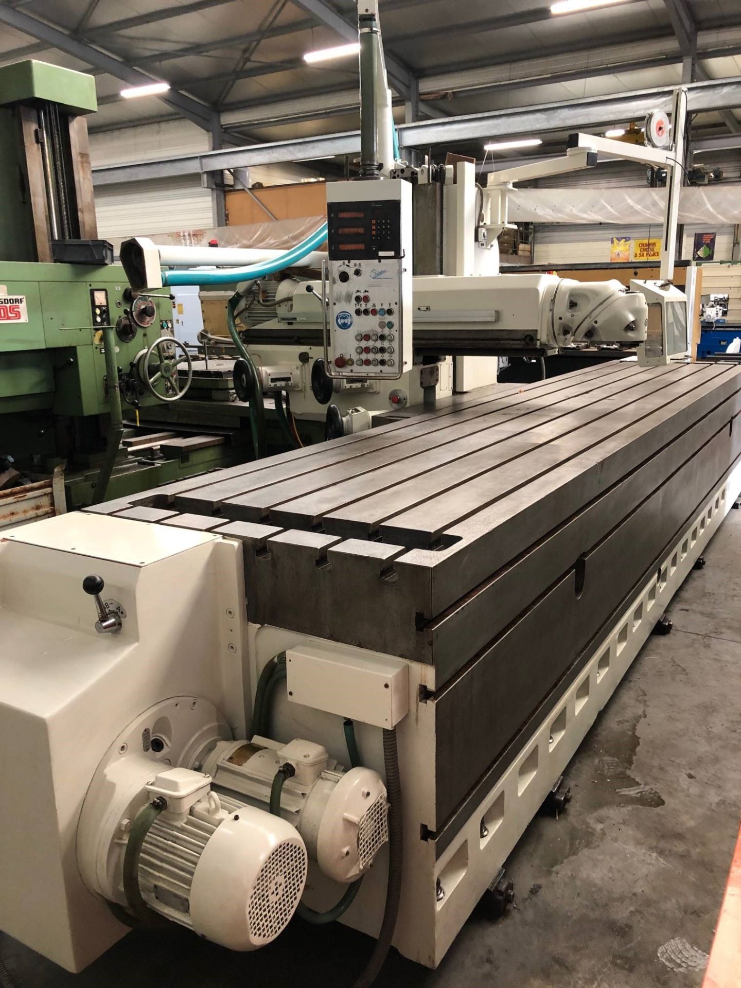 Marque HURON - Type RU 991 - Course longitudinale 4500 mm - Course transversale 1000 mm - Course verticale 1000 mm - Dimension table 6155x1000 mm - Vitesse de broche 15 - 1500 tr / min (RPM) - Encombrements 6400 x 2400 x 2600 - Poids 18T -
