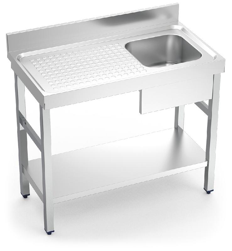 Évier inox avec support avec tablette série 550 1 cuve 1 égouttoir côté gauche jupe partielle