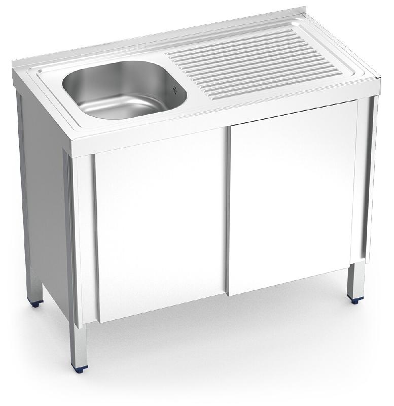 Evier inox à portes coulissantes série 500 1 cuve 1 égouttoir à droite