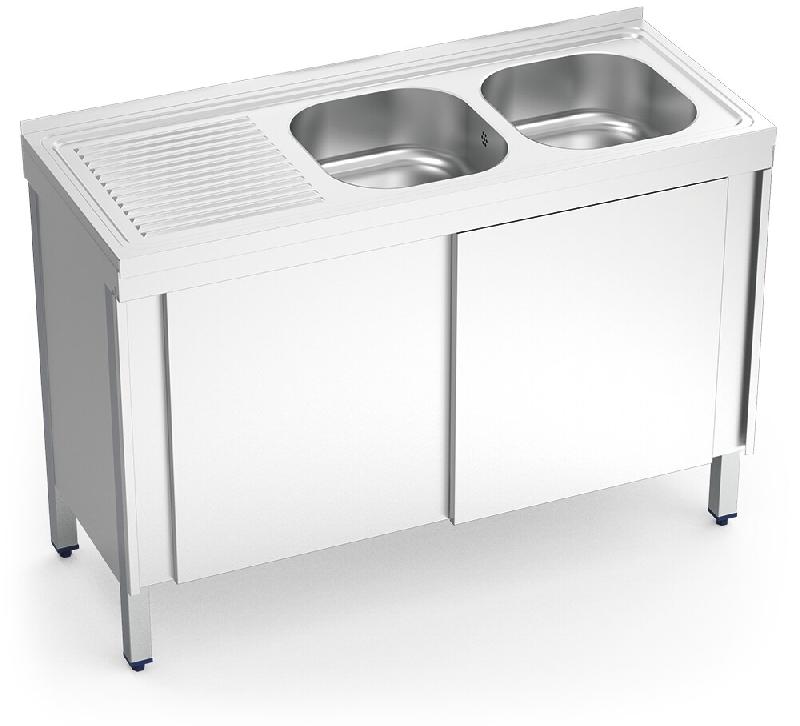 Evier inox à portes coulissantes série 500 2 cuves 1 égouttoir à gauche