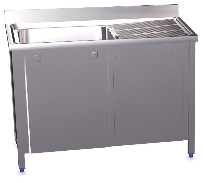 Plonge avec passage lave - vaisselle et placard en 1 porte battante,cuve à gauche : L 50 x P 40 x H 25 cmCorps et portes en acier inox AISI 304 de qualité supérieure Convient comme armoire de rinçage pour lave - vaisselles jusqu'à max. 600 mmÉtagère de fondPieds réglables en hauteurPieds en