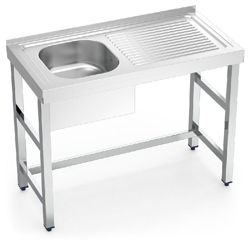 Evier inox avec support sans tablette série 500 1 cuve 1 égouttoir côté droit plinthe partielle