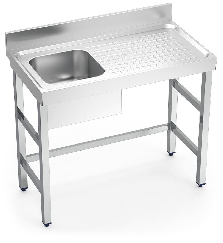 Evier inox avec support sans tablette série 550 1 cuve 1 égouttoir côté droit plinthe partielle