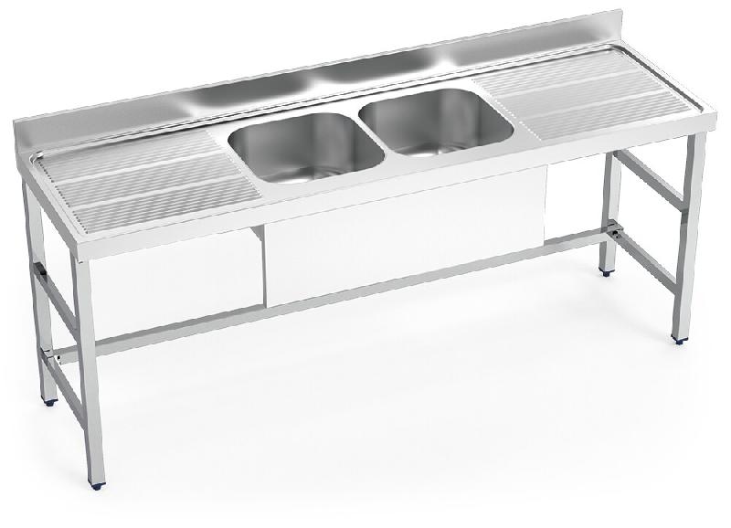 Evier inox avec support sans tablette série 600 2 cuves 2 égouttoirs plinthe partielle