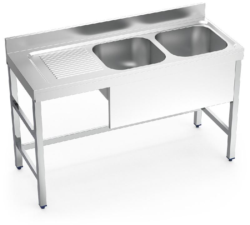Evier inox avec support sans tablette série 550 2 cuves 1 égouttoir côté gauche jupe partielle
