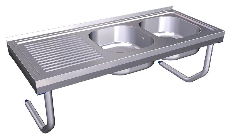 - Évier suspendu avec boutons, deux cuves et égouttoir.