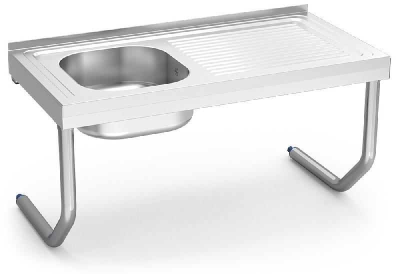 Dimensions totales (cm) : 120 (longueur) x 60 (largeur) x 85 (hauteur) cm. Dimensions de la cuve (cm) : 50 (longueur) x 40 (largeur) x 25 (hauteur) cm. Évier sur pied avec une cuve et un égouttoir en acier inoxydable, adapté aux verres et aux assiettes. - Caractéristiques techniques évier av