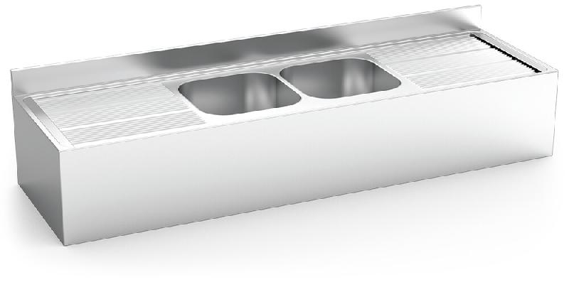 Dimensions disponibles : - 2 grands bacs : 1400 x 700 - 2 bacs avec 2 égouttoirs : 2400 x 700 - 2 bacs avec 1 égouttoir : 1800 x 700 - 1 bac avec 1 égouttoir : 1400 x 700 -