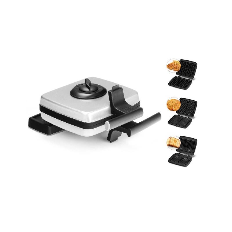 Plaque livrées avec produit : 3 (gaufres, croque-monsieur et gaufrettes).