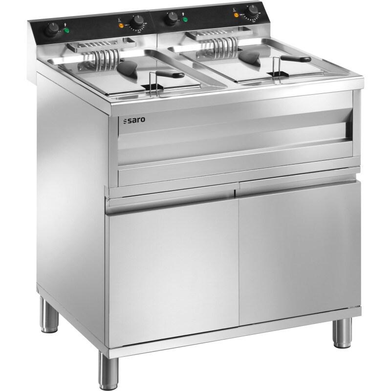 7455.0965 - Friteuse professionnelle electrique double cuve 2x12l sur armoire fermée - 2x9kwDimensions (LxPxH) (mm) : 800x700x850Tension (Volt) : 400Puissance totale (kW) : 2x9Nombre de paniers : 2Contenu bassin de friture (Ltr) : 2x12
