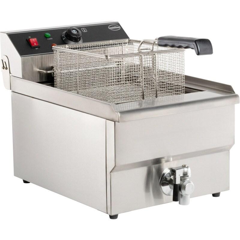 Friteuse électrique de table idéale pour les cuisines professionnellesCapacité de 8 litres pour répondre aux besoins des cafétérias et barsChauffage rapide et uniforme de l'huile grâce à une puissance de 3,3 kWVanne de vidange pour un entretien et un nettoyage facilesPanier de friture robust