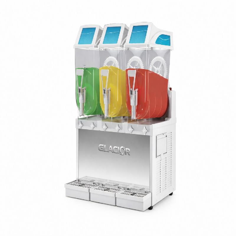 FROSTY 3 - DISTRIBUTEUR DE GRANITÉ 3×12 LITRES - Gain de place et forte rentabilité. - Mode nuit : Garde le bac à 4°C toute la nuit pour une meilleure conservation et un minimum de perte de produit. - Double malaxeur : Un second malaxeur en hauteur évite l’accumulation de glace en surfac