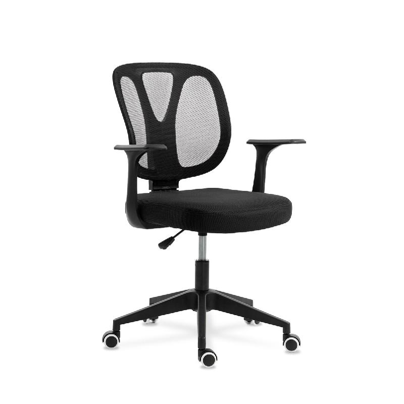 • ESTHÉTIQUE NOIRE ET POLYVALENTE : Sa finition noire monochrome, de la structure aux accoudoirs fixes, en passant par le piètement et les roulettes, confère à la chaise une élégance intemporelle qui s'intègre harmonieusement à un décor industriel, moderne ou classique.