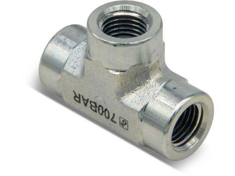 FZ1637, High Pressure Fitting, Tee, 700 bar Maximum Operating Pressure, Connection from 1/4" NPTF to 1/4" NPTF